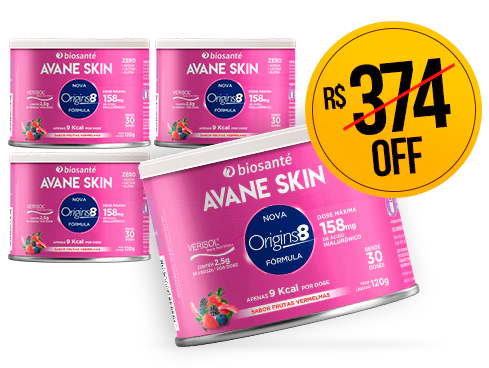 Avane Skin é a evolução do colágeno! Diferente dos comuns, ele combina Verisol® + trans-resveratrol, retinol e niacinamida, potencializando a firmeza da pele, suavização de rugas e redução da flacidez e celulite.